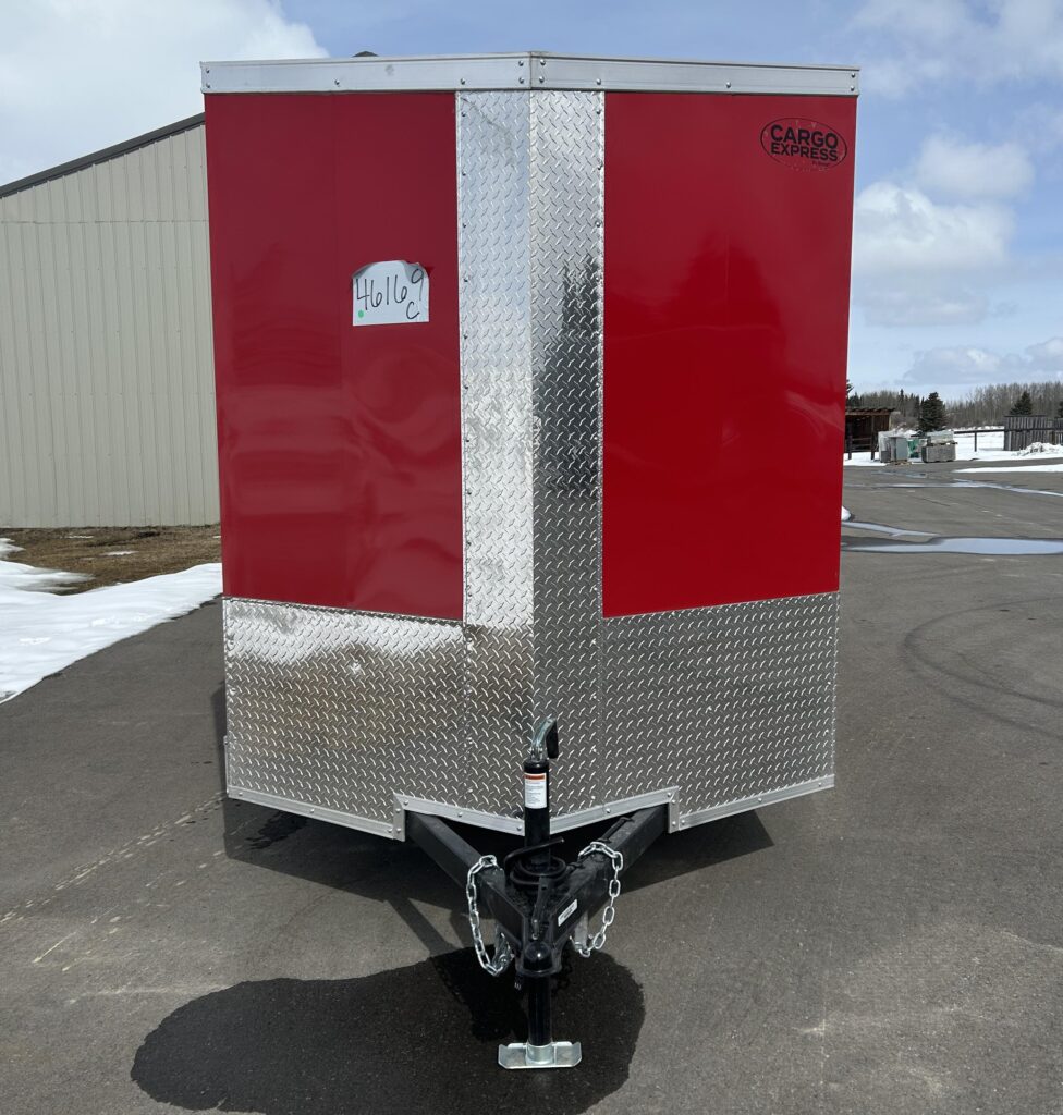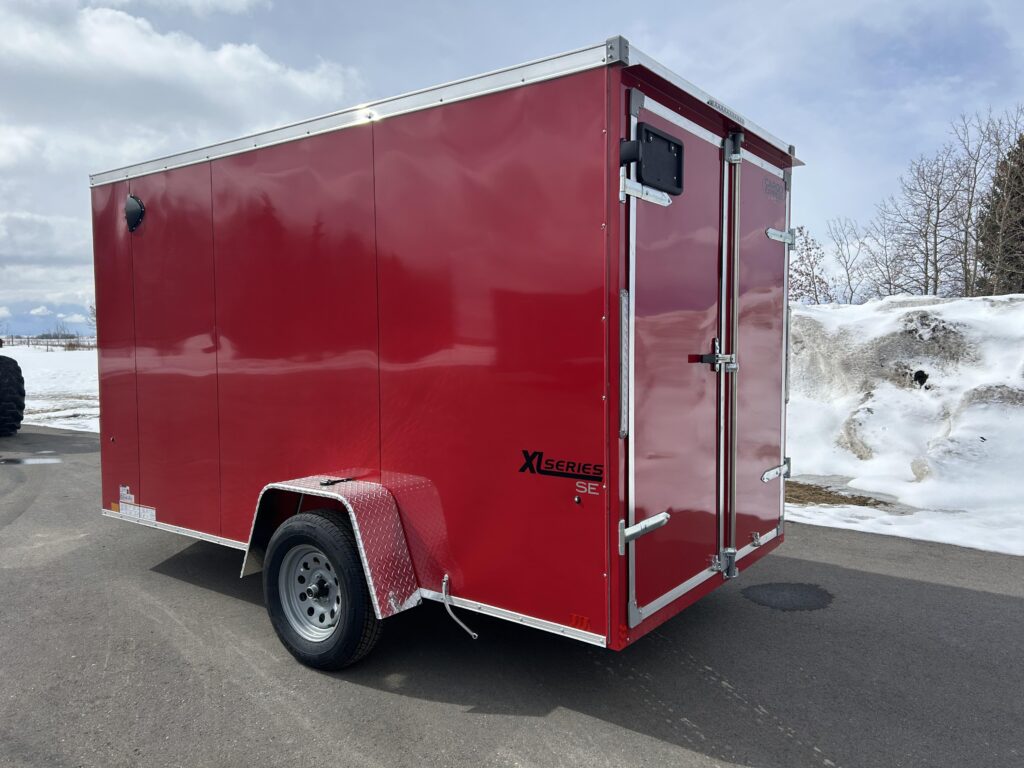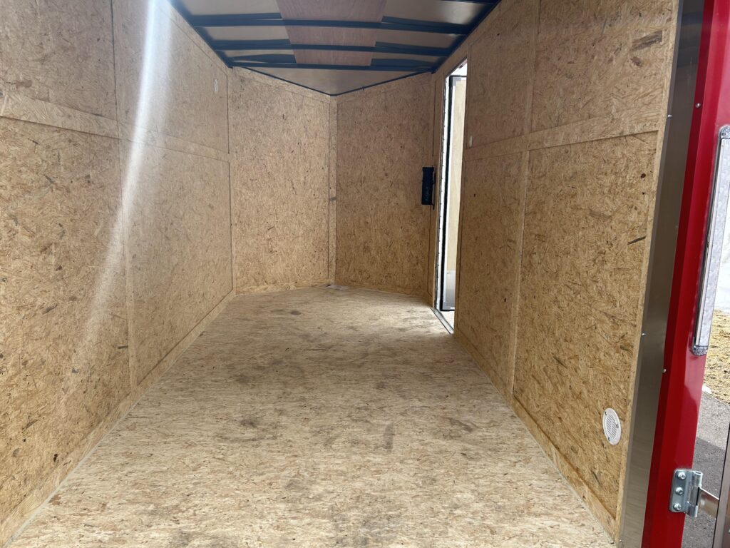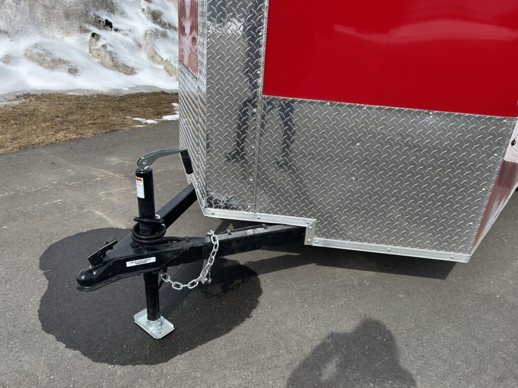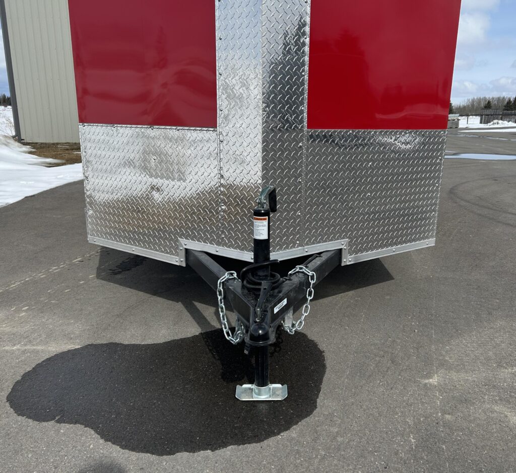 6″ Extra height for a total of 78″ interior height! Stunning in red, screwless exterior. 24″ sloped v-nose, 2990 GVWR.