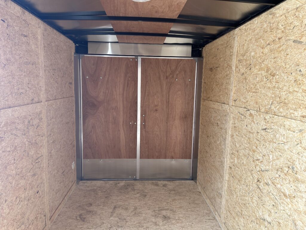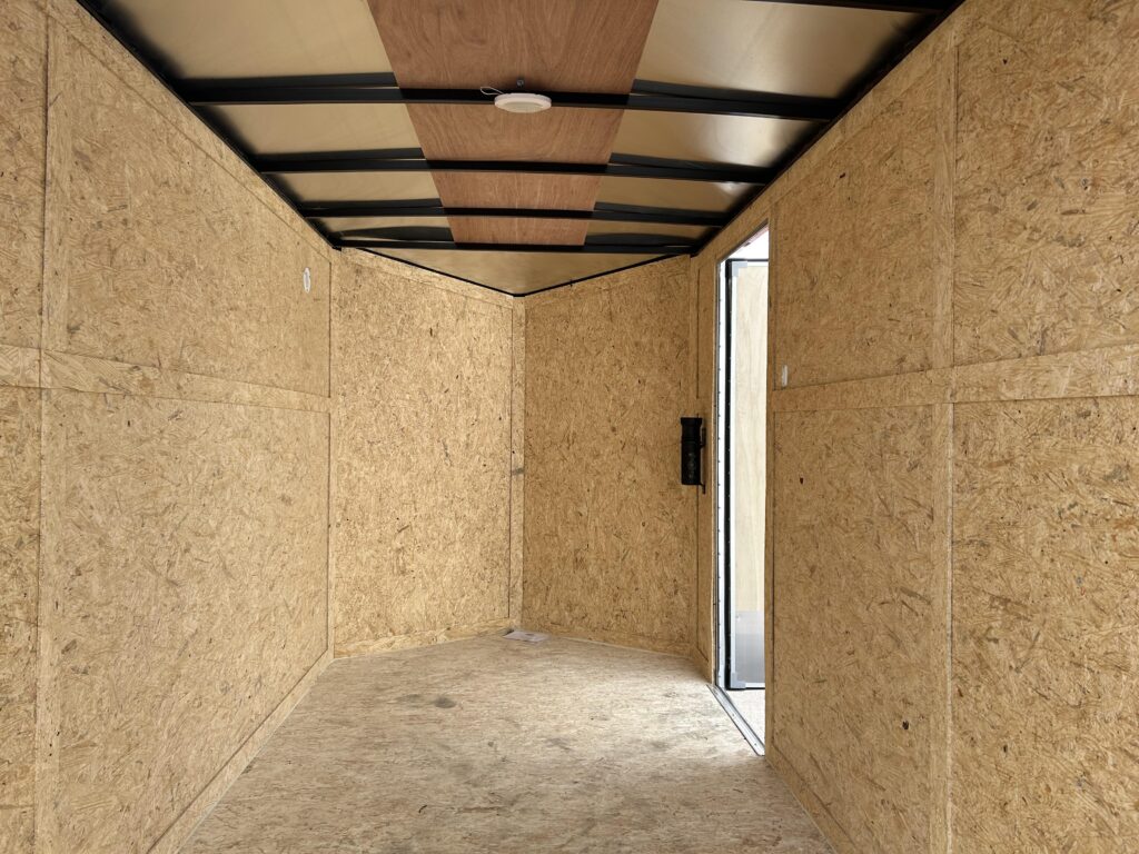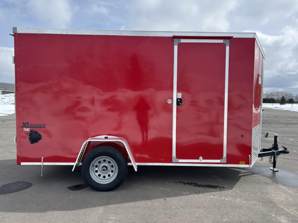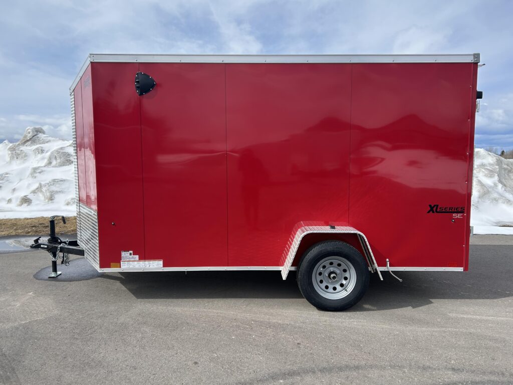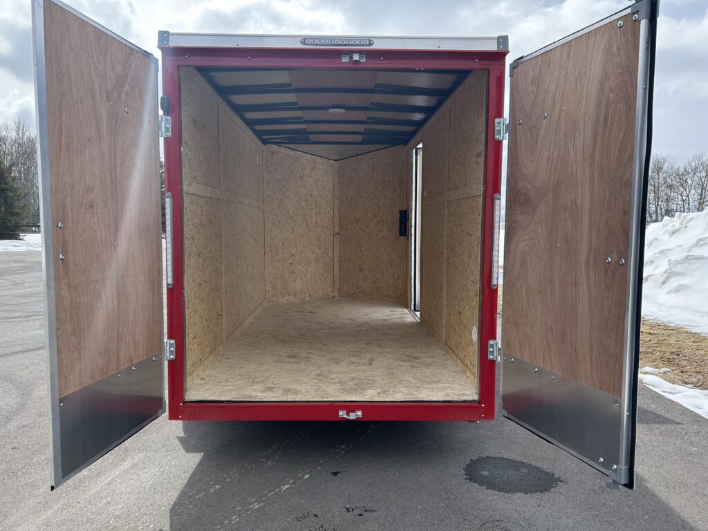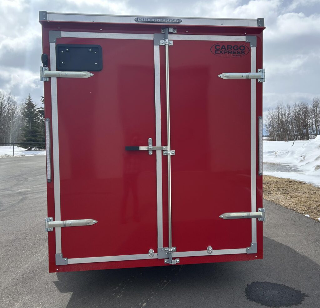 6″ Extra height for a total of 78″ interior height! Stunning in red, screwless exterior. 24″ sloped v-nose, 2990 GVWR.