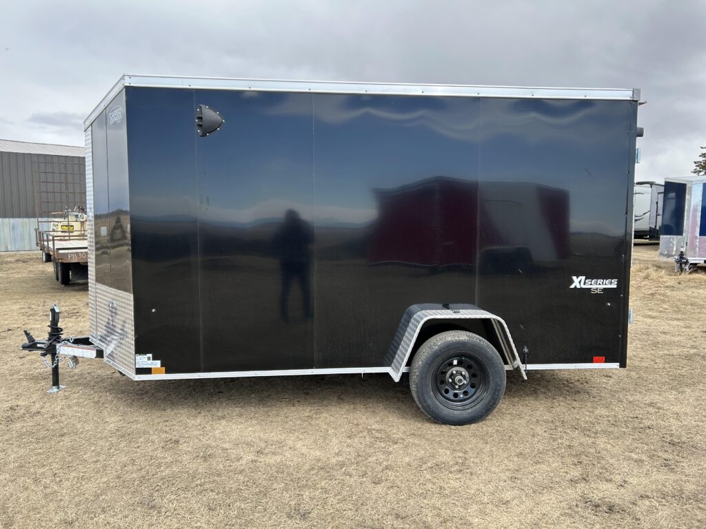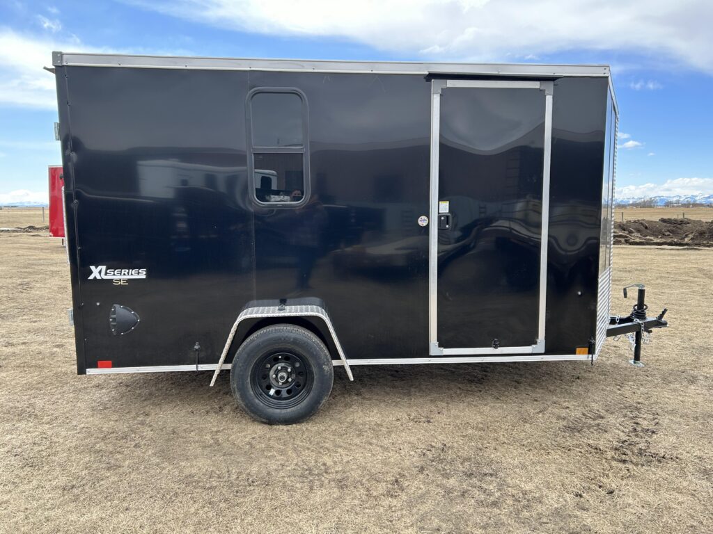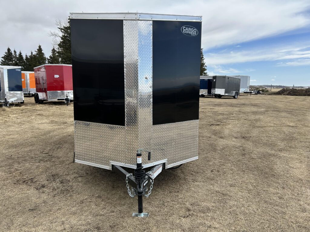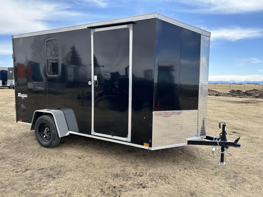 2023 Cargo Express 6×12 with 24″ sloped v-nose, finished in black screw less aluminum.