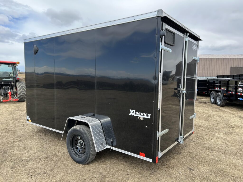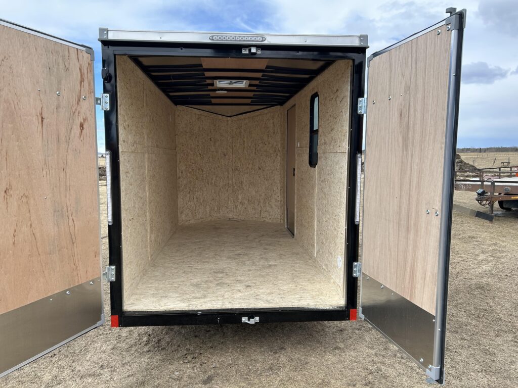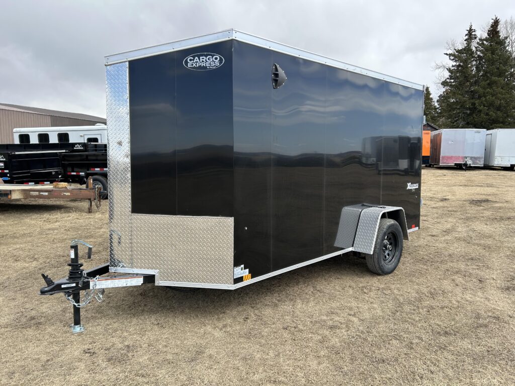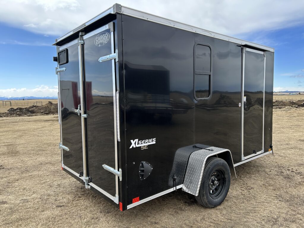 2023 Cargo Express 6×12 with 24″ sloped v-nose, finished in black screw less aluminum.