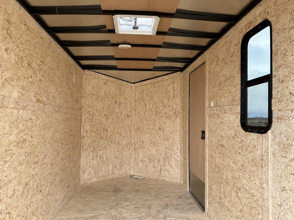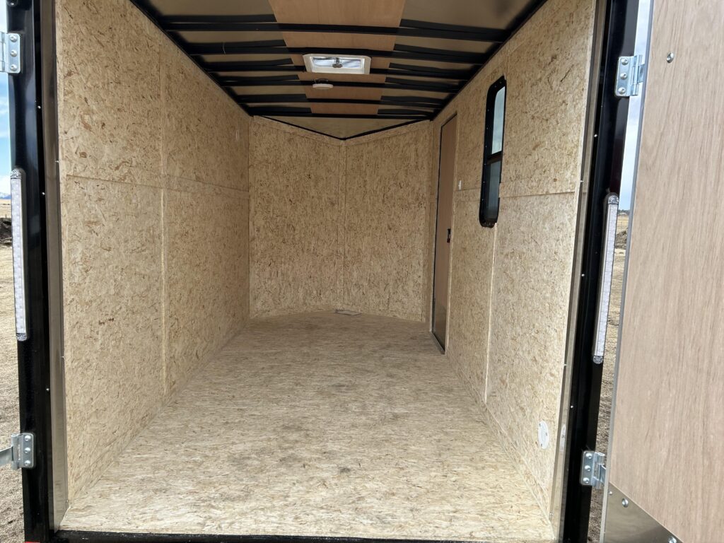 3,500lb axle, 2,000lb top wind jack, automotive undercoating. Double barn doors and a 32Wx74H RV man door. LED dome light and LED tail lights.
