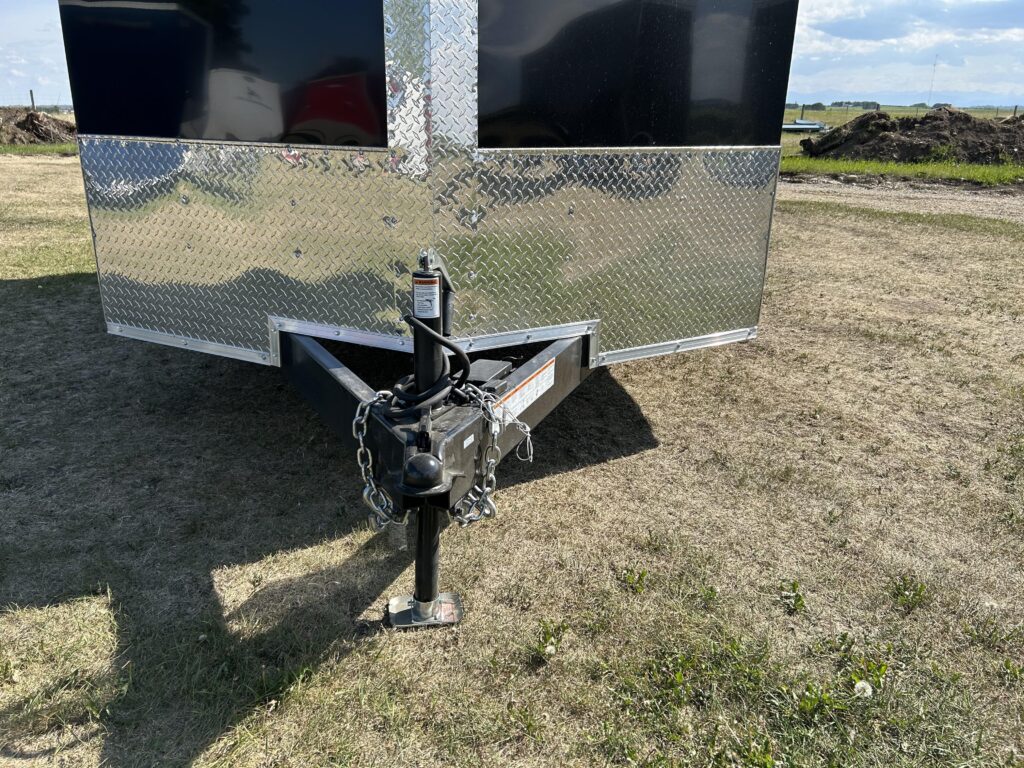 Tandem 3,500lb axles, 4″ tube frame, 16″ O.C sidewalls and floors. 24″ sloped v-nose. 2,000lb jack.