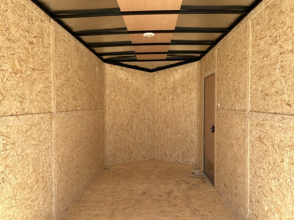 84″ Interior height, 6″ Extra height, RV man door with a bar lock. 4- 5,000lbs D-rings, fold down stabilizer jacks, and loading lights!