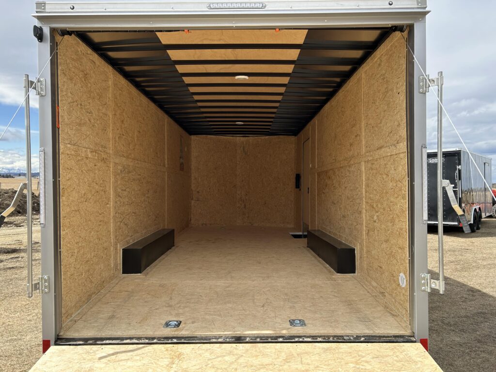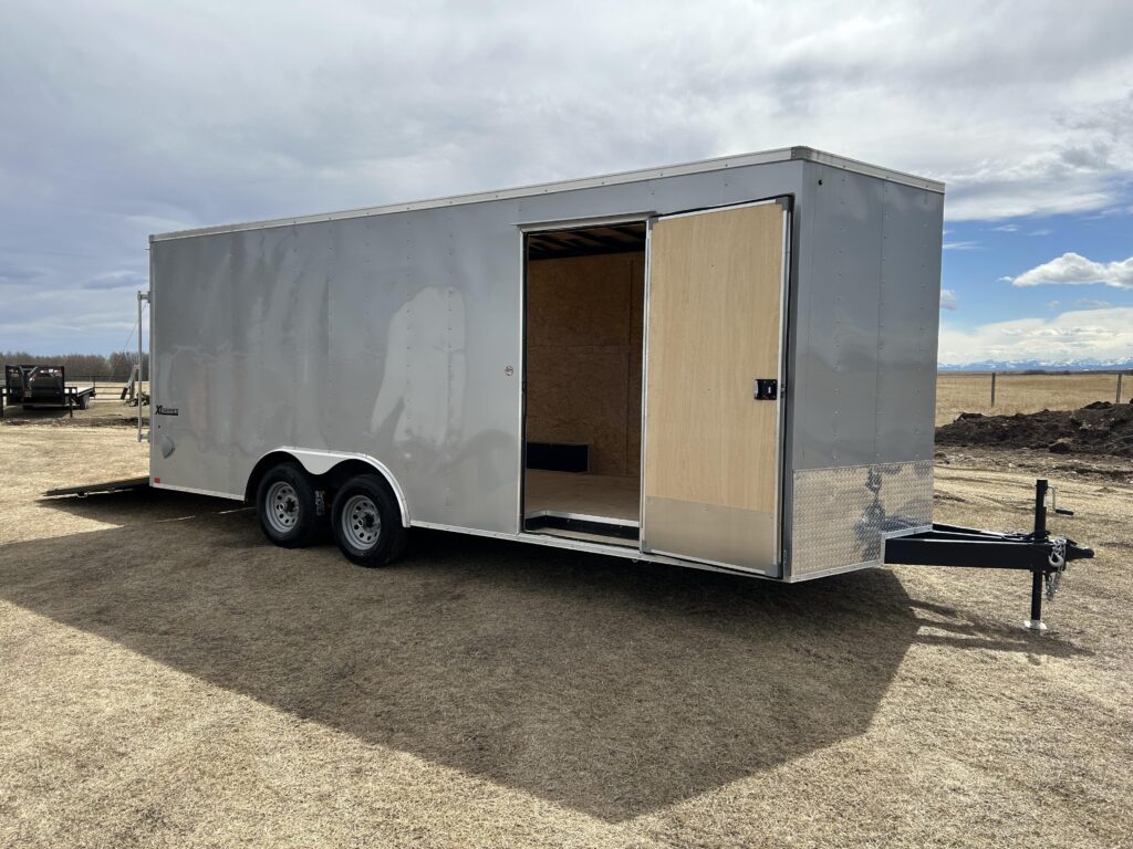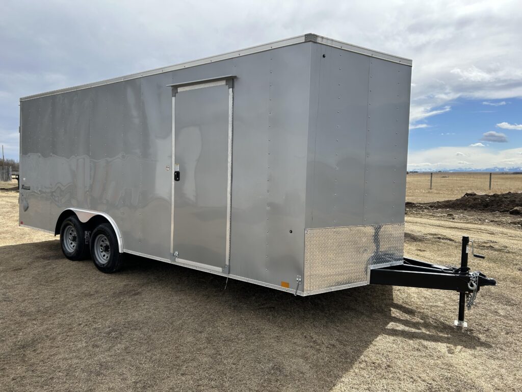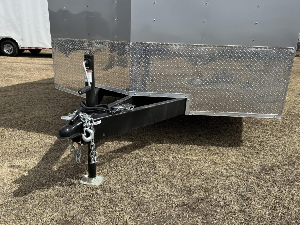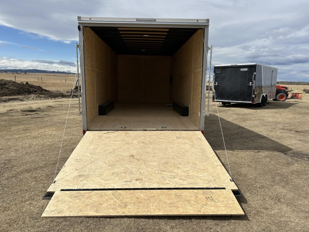 8.5×20 Car Hauler/Cargo Trailer. 18″ V-nose, tandem 5,200lbs, undercoated. Ramp door with spring assist and 16″ ramp extension! RV man door, and two sidewall flow-thru vents. Two dome lights and 4 floor mounted tie down rings (5,000lbs)