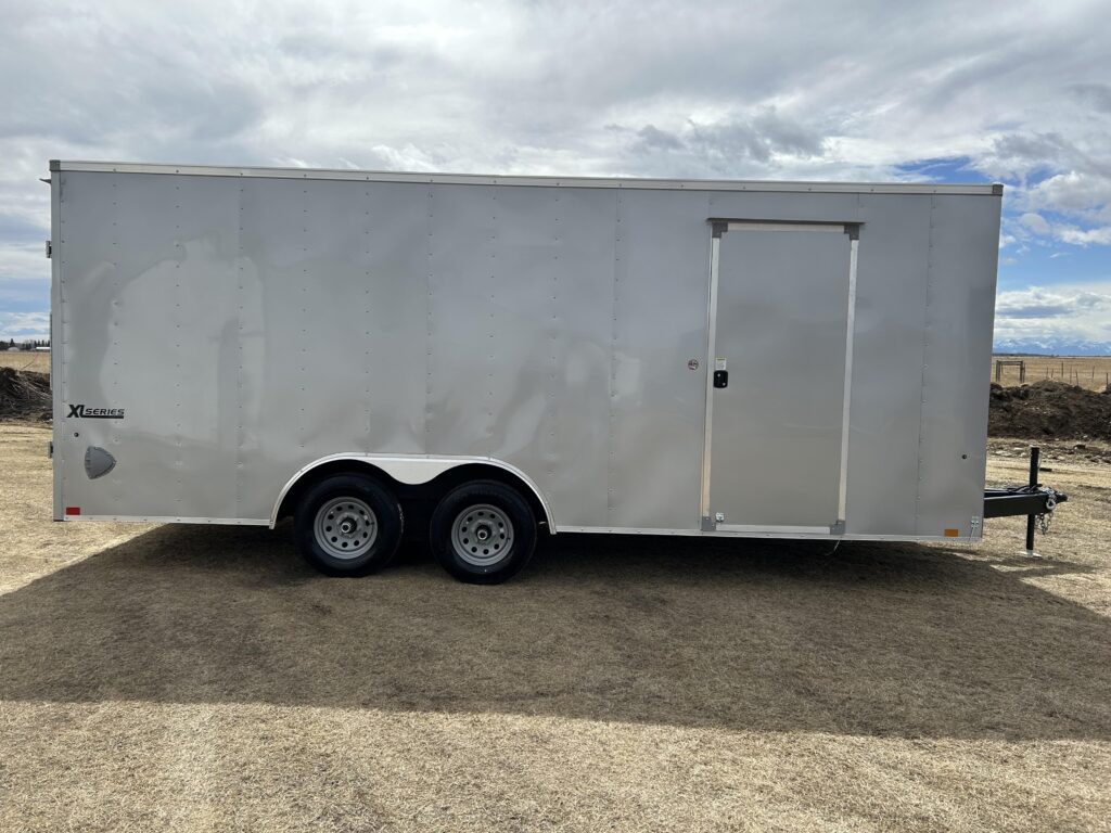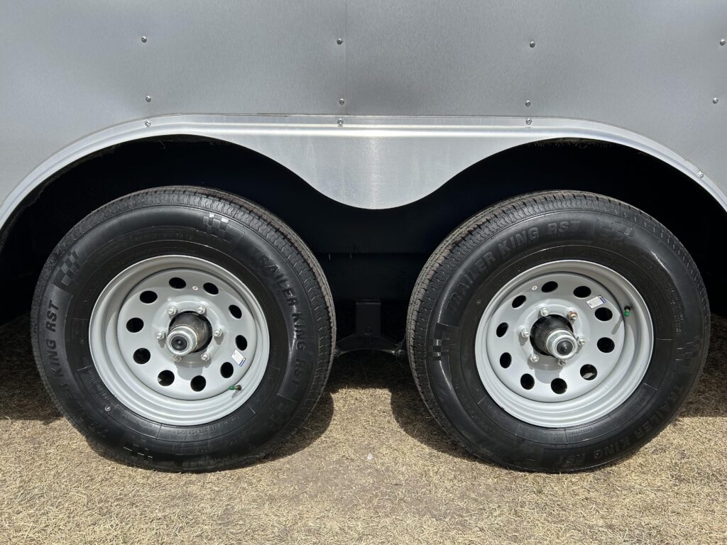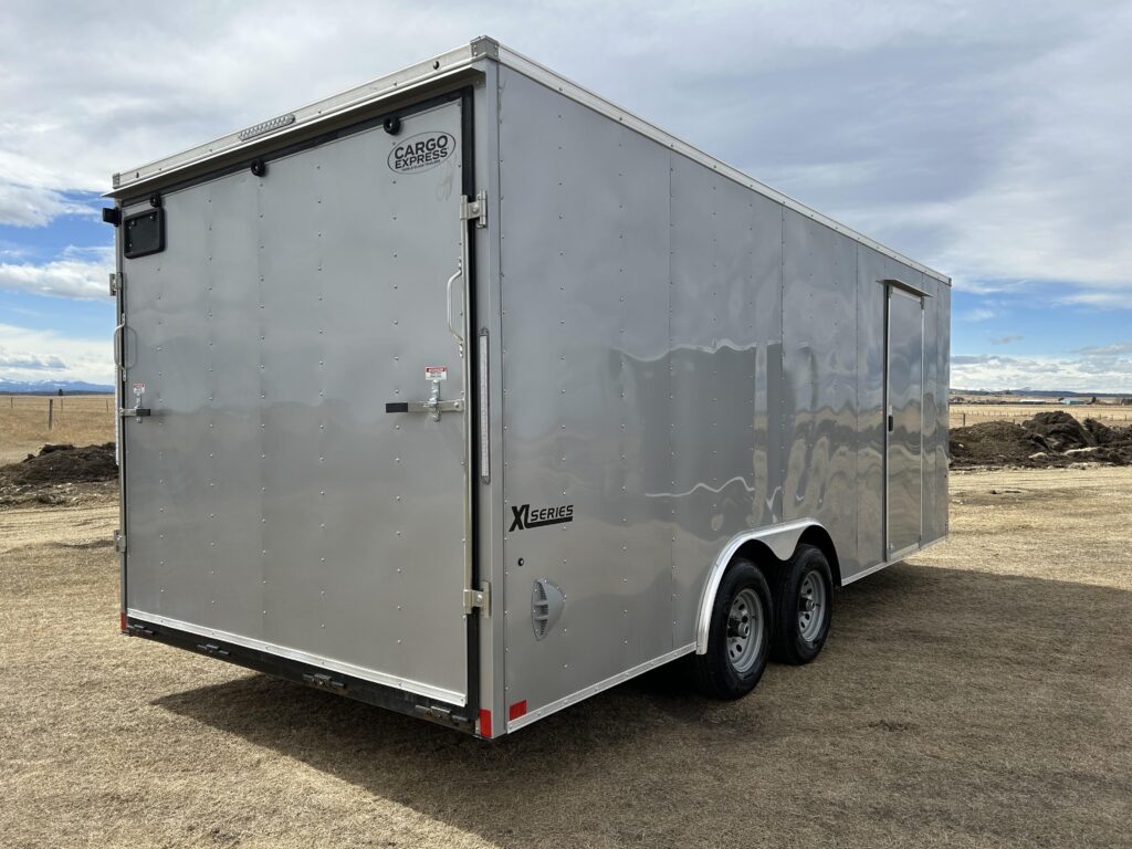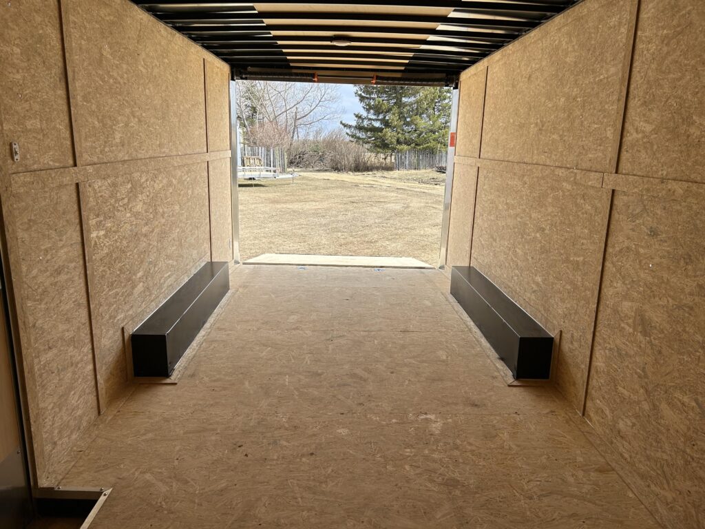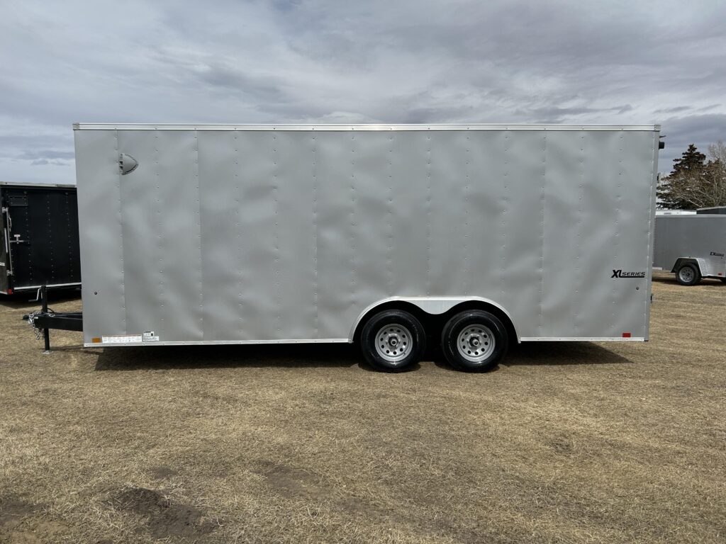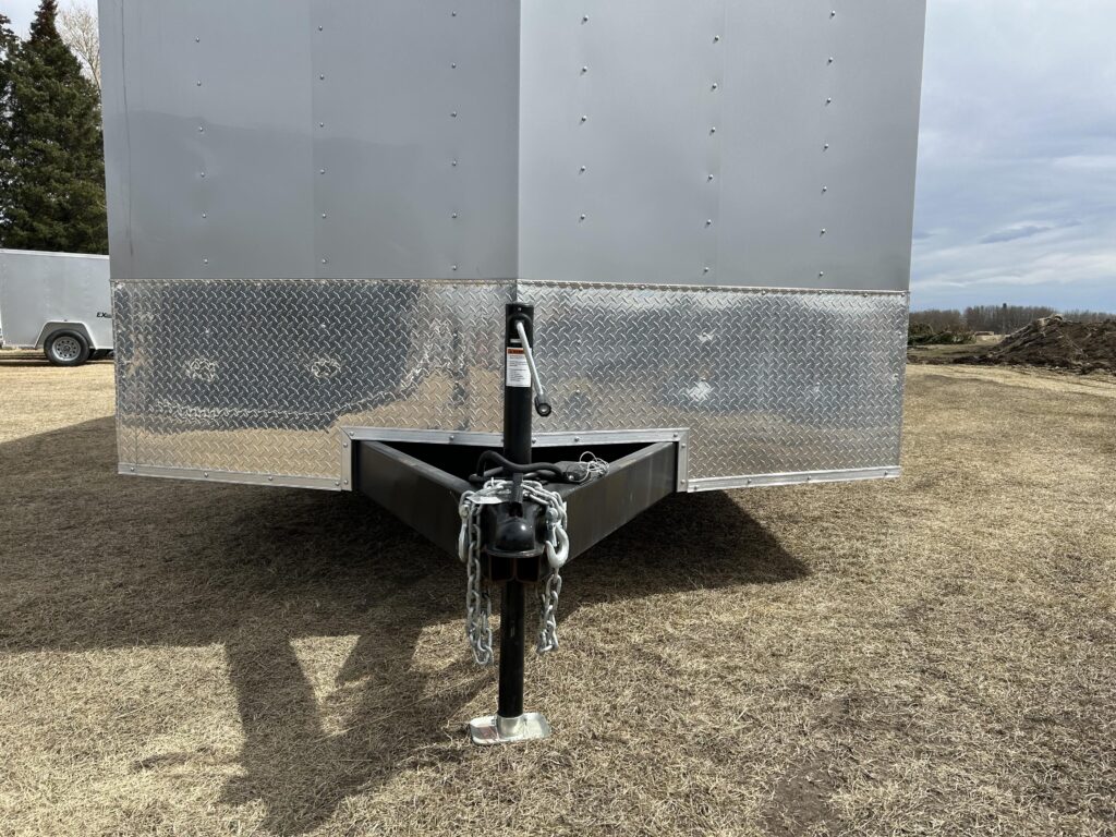8.5×20 Car Hauler/Cargo Trailer. 18″ V-nose, tandem 5,200lbs, undercoated. Ramp door with spring assist and 16″ ramp extension! RV man door, and two sidewall flow-thru vents. Two dome lights and 4 floor mounted tie down rings (5,000lbs)