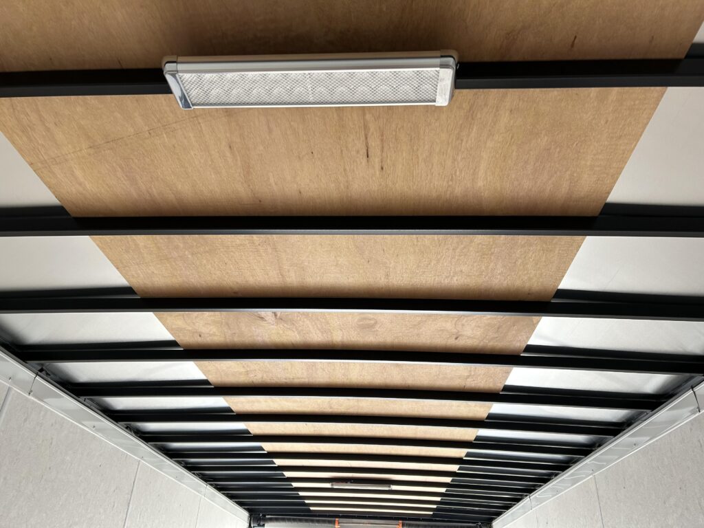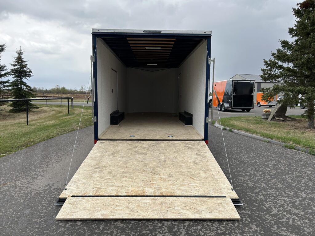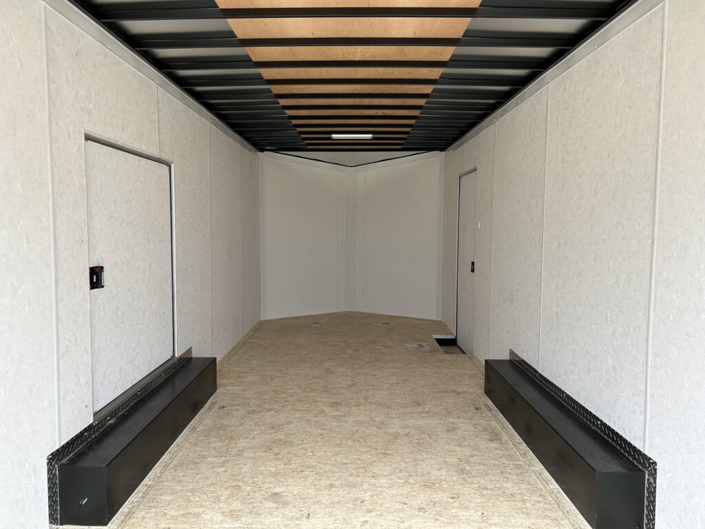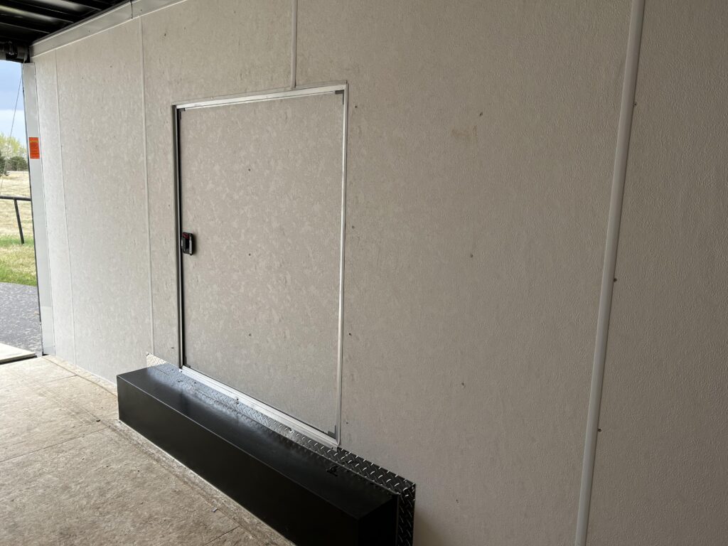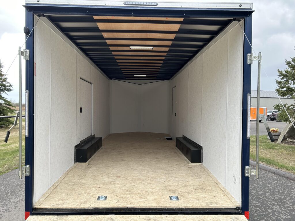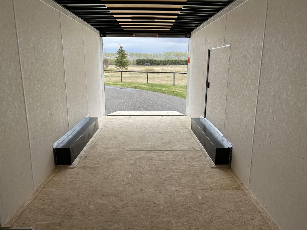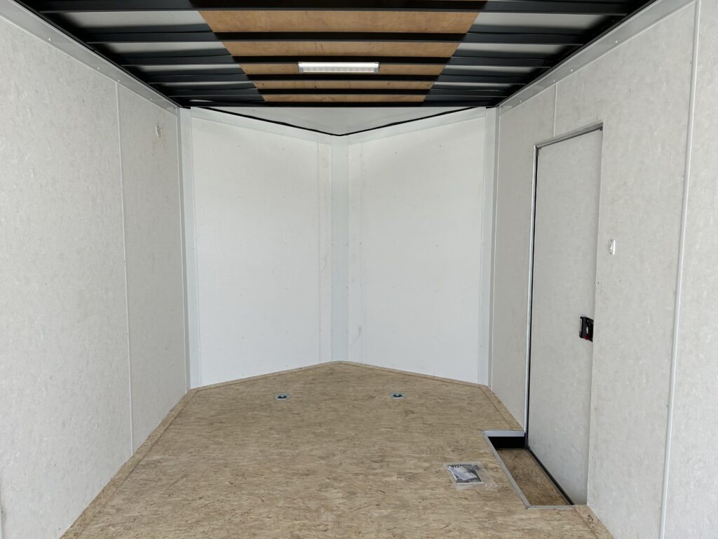 The walls are finished in white vinyl, 2- 12V 18″ interior LED lights. 4-5,000lb D-rings