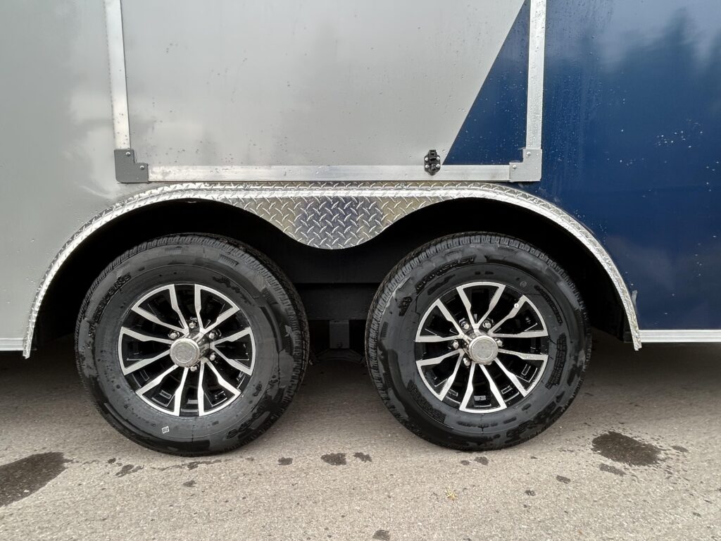 30″ sloped v-nose. Tandem 5,200lb axles, 225/75 R15 with aluminum wheels! 2,000lb top wind jack. Spring assisted ramp door with a 16″ ramp extension.